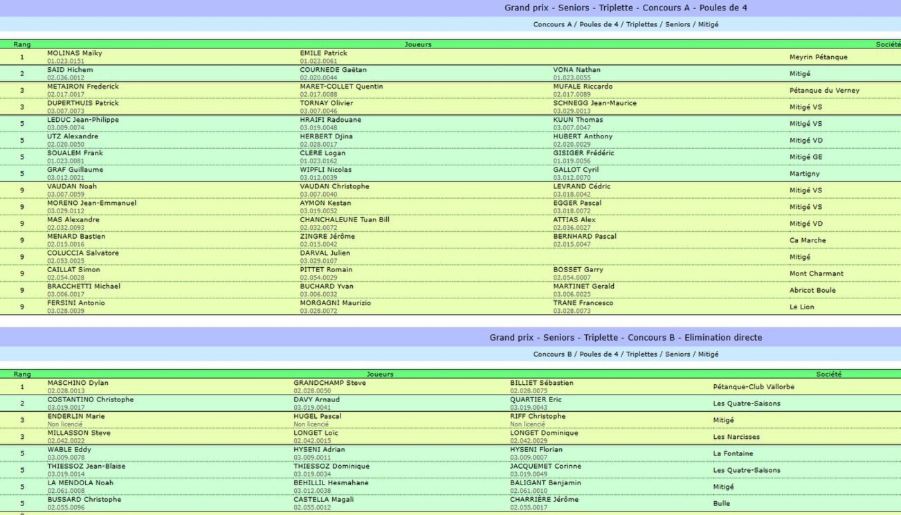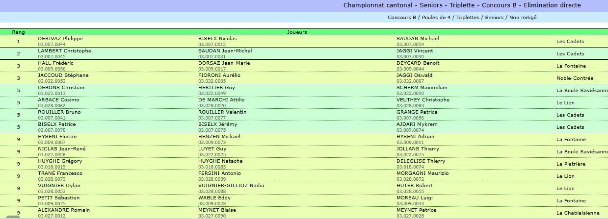 Championnat Valaisan triplettes 2025 : Concours A Seniors