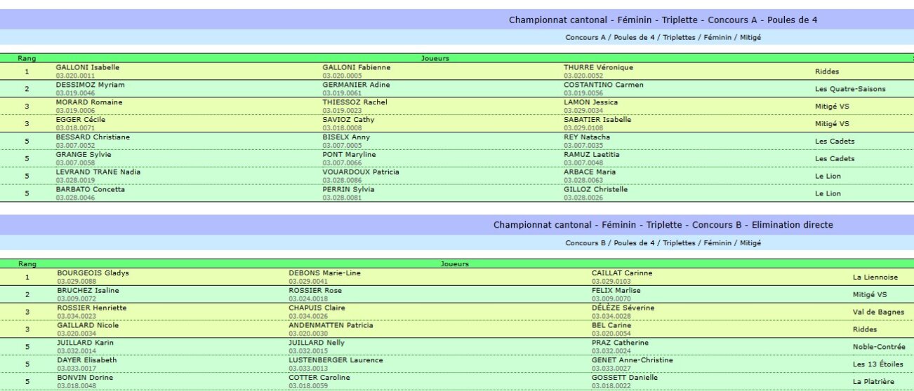 Championnat Valaisan triplettes 2025 : Concours A Dames et complémentaire