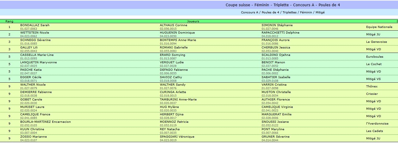 Coupe suisse - Féminins - Triplette - Concours A - Poules de 4