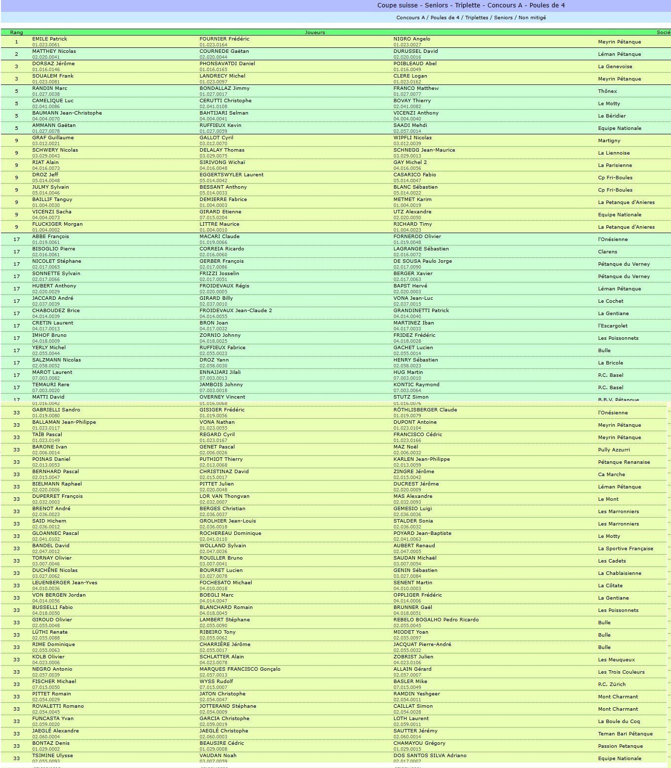 Coupe suisse - Seniors - Triplette - Concours A - Poules de 4