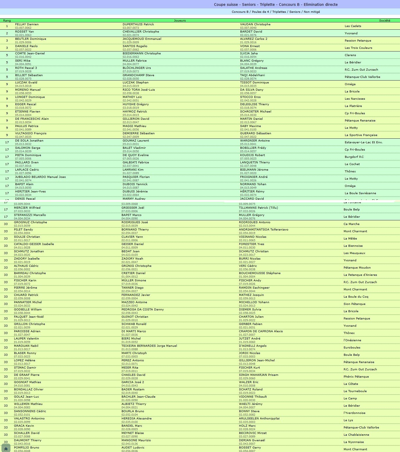 Coupe suisse - Seniors - Triplette - Concours B - Poules de 4