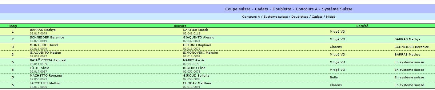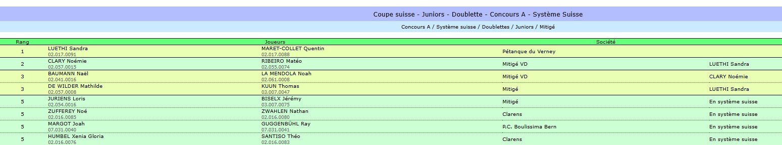 Coupe suisse - Cadets - Triplette - Concours A - Poules de 4