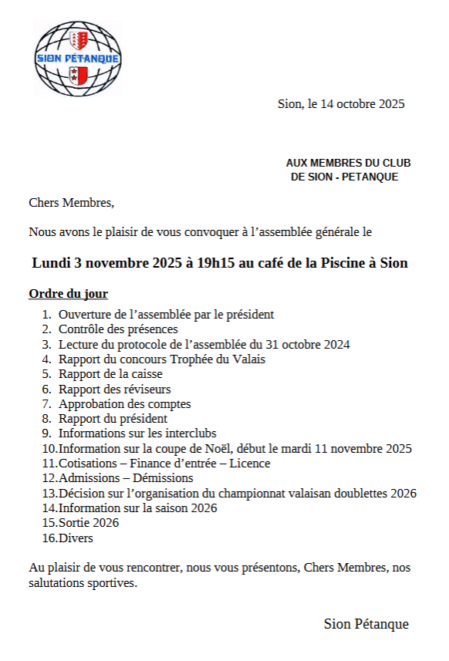 Souper suite à l'assemblée générale du 31 octobre 2024.